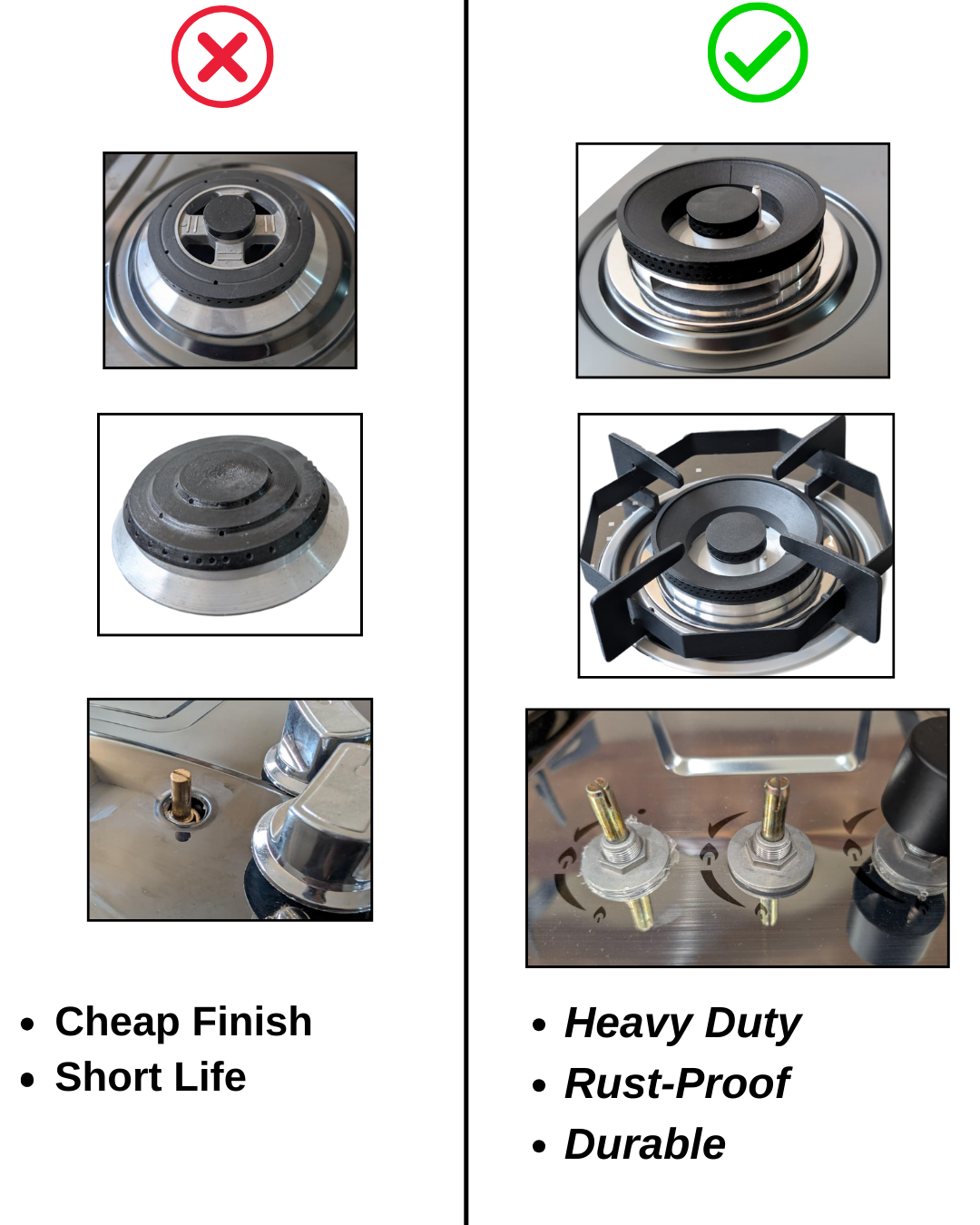| Control Knobs | Metal – Strong & Durable |