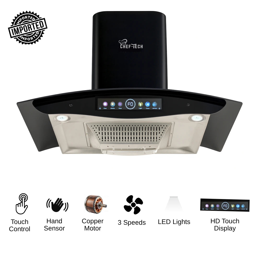 Hand Sensor Control: Enjoy touch-free convenience — simply wave your hand to switch the hood on or off or adjust speed settings.